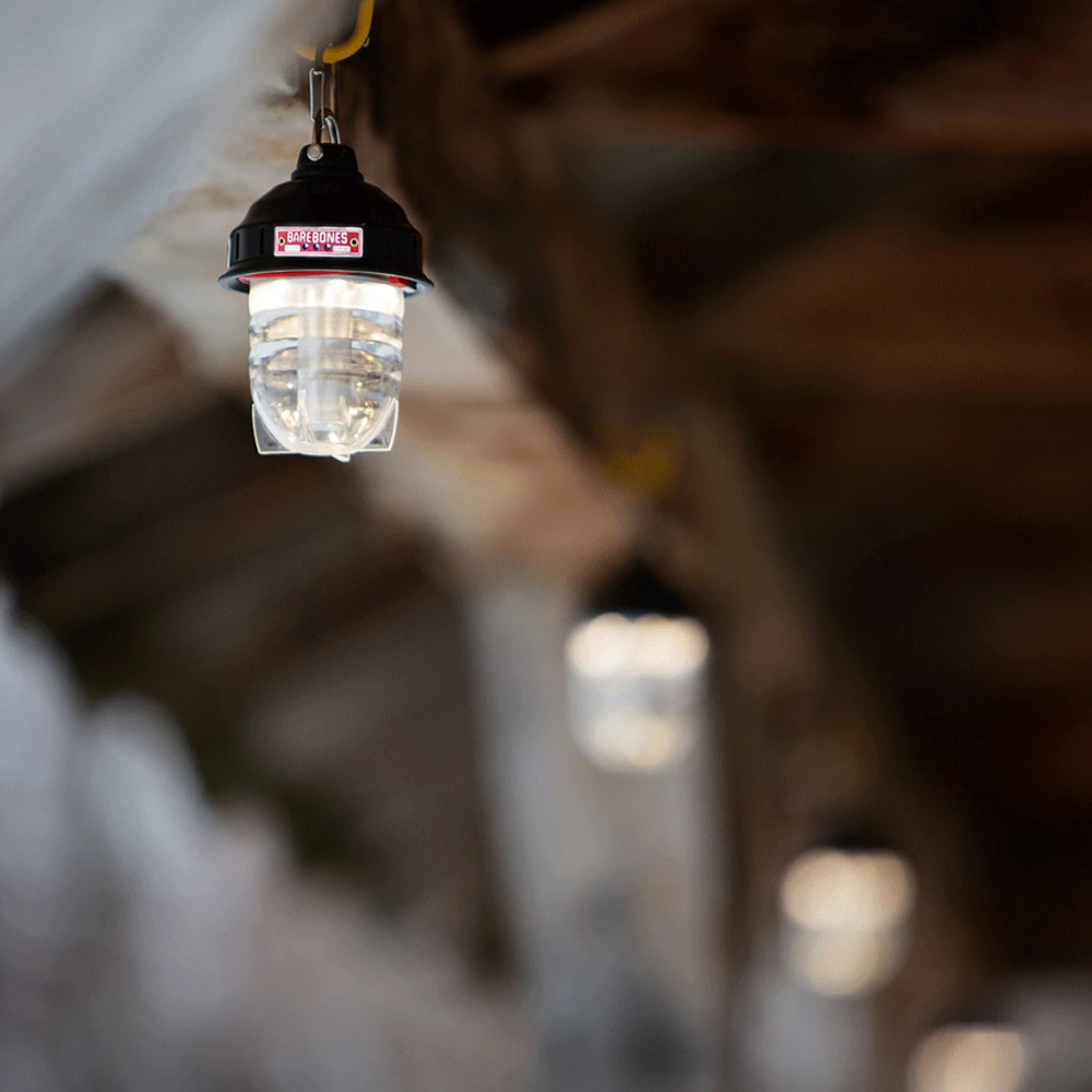 Our Barebones Beacon light comes with a smooth dimming feature that allows you to completely brighten your surroundings or simply set the mood. This portable light easily hangs with its carabiner top or stands on its sturdy base. The Beacon comes with a 30-inch cord for its rechargeable battery—which lasts 200+ hours on low or three hours on high. And thanks to a convenient battery life indicator, you’ll never be left in the dark.