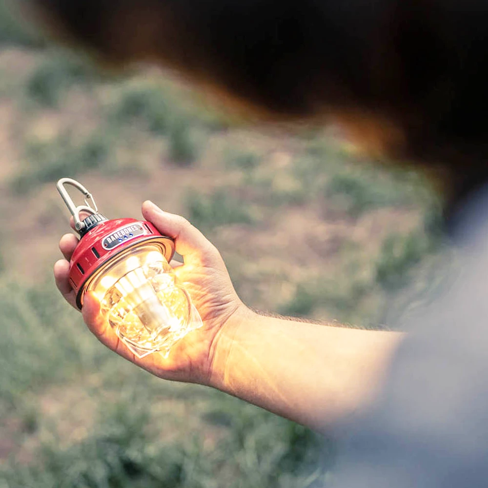Our Barebones Beacon light comes with a smooth dimming feature that allows you to completely brighten your surroundings or simply set the mood. This portable light easily hangs with its carabiner top or stands on its sturdy base. The Beacon comes with a 30-inch cord for its rechargeable battery—which lasts 200+ hours on low or three hours on high. And thanks to a convenient battery life indicator, you’ll never be left in the dark.