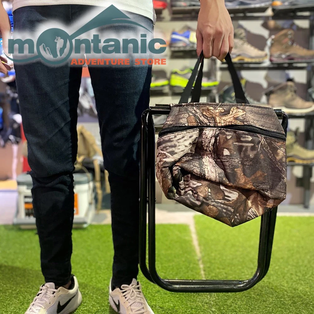 - Folding stool with built-in cooler compartment
