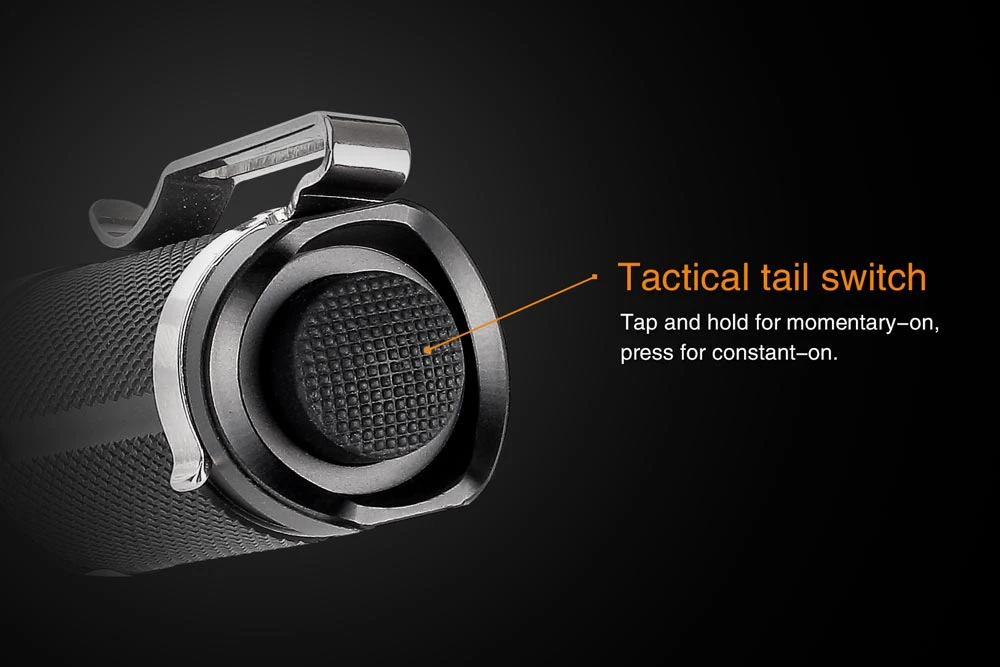 - Tactical tail cap switch with momentary-on function