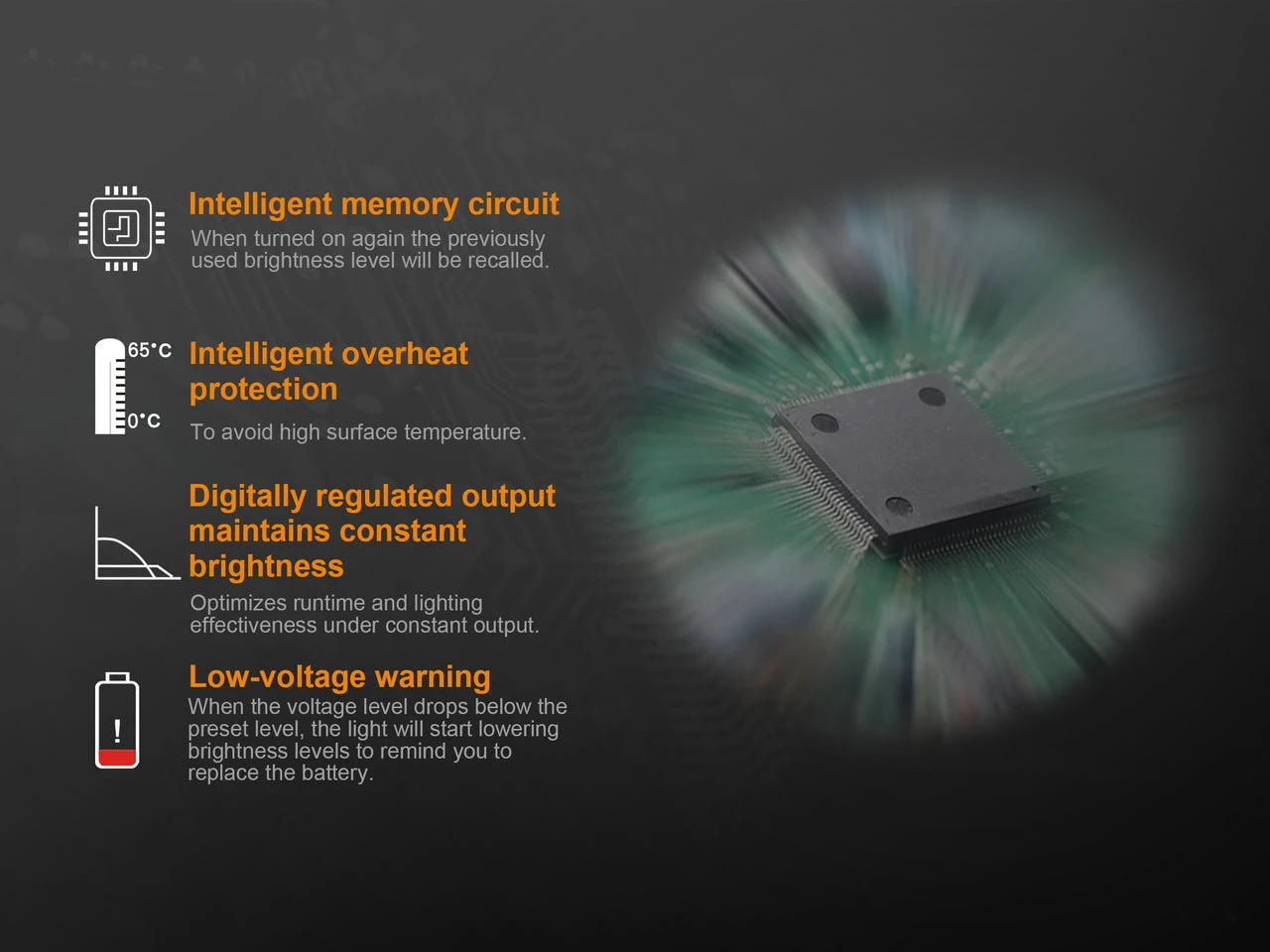 - Utilizes CREE XP-G2 LED with a lifespan of 50,000 hours