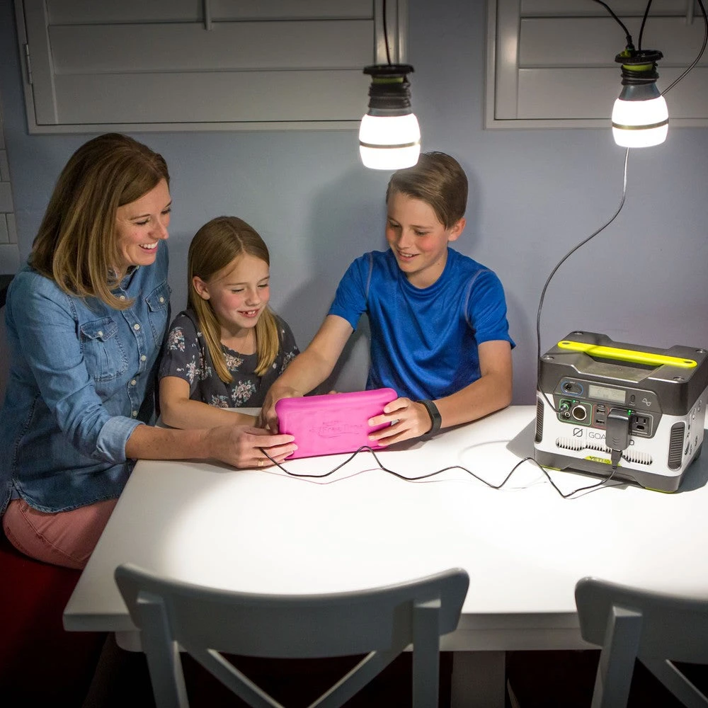Bright LED light with 350 Lumens, and adjustable shade for lantern or focus light. High/low setting and integrated cord makes this the perfect light for every adventure. For use with Sherpa 50 & 100 Power Packs or Yeti Power Station. Built-in carabiner and magnets so it’s quick to hang anywhere. Chainable with up to 8 lights.