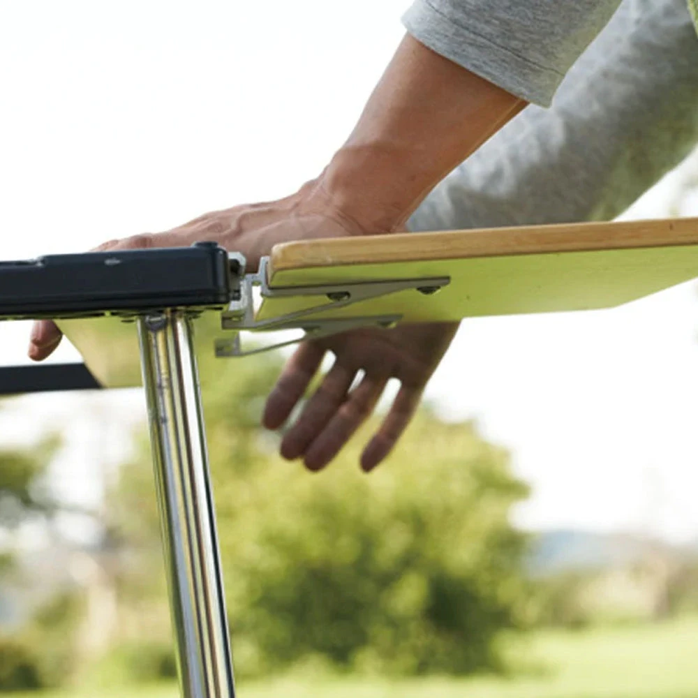The IGT SLIDE TOPLONG HALF is made of sturdy and sleek bamboo in an updated finish. Use it to easily add 22 inches of extra space to your outdoor kitchen and dining space. The IGTÂ Slide Toplong Half does not require a hook, but slips into the ridges along the outside of the frame. Compatible with the IGT 4 Unit Sitting Set.