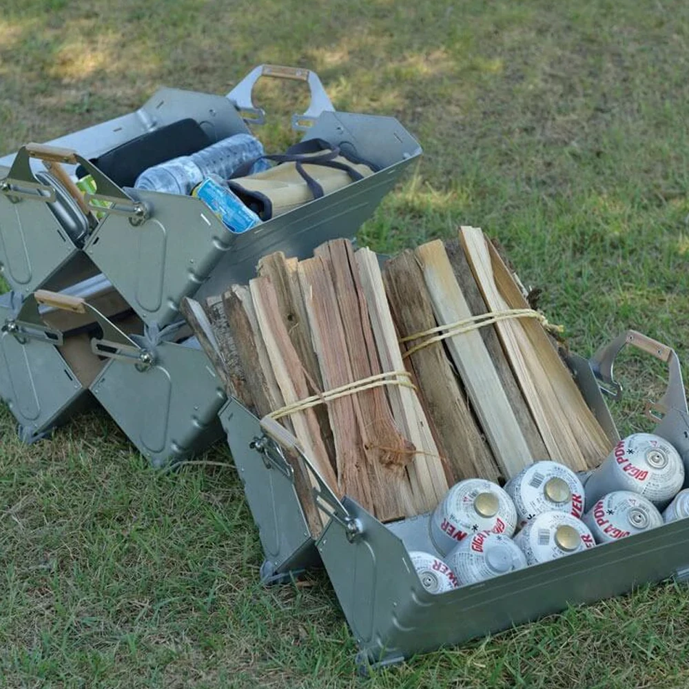 Designed in Japan, the stainless steel Stacking Shelf Container is a versatile storage option. Keep it at home for convenient storage or use it as a grab-and-go option for your camping gear. The Stacking Shelf Container features bamboo handles for extra style and can also fold open to store bulky items such as firewood or blankets. Stack several containers to form a sturdy and durable shelf.